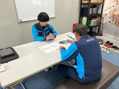 | 若手技術者の皆様へ | 建設業では未だに3Kのイメージが根強く残っていますが、近年の建設業は働き方改革によって非常に働きやすい環境へと変化しています。休日も多く自分の時間も十分確保でき、ICT技術や最新機器の導入により現場監督の仕事量が軽減されています。また上司の方々も優しく丁寧に教えてくれるので相談しやすい職場環境が整っています。働きやすくなった建設業で若者同士共に頑張っていきましょう!! |