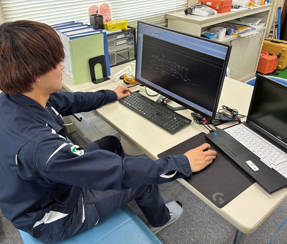 | 現場での役割 | 現場では、先輩技術者の補佐として安全・品質・出来形・写真管理の補助を行っています。 先輩にサポートしていただきながら日々の管理を覚えているところです。 |