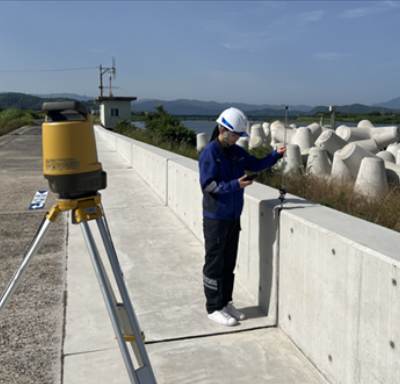 現場での役割 | 現場では、監理技術者と現場代理人の指導の下、安全・写真・品質・出来形管理の補助を行っています。上司の下、日々の管理を覚えているところです。 |